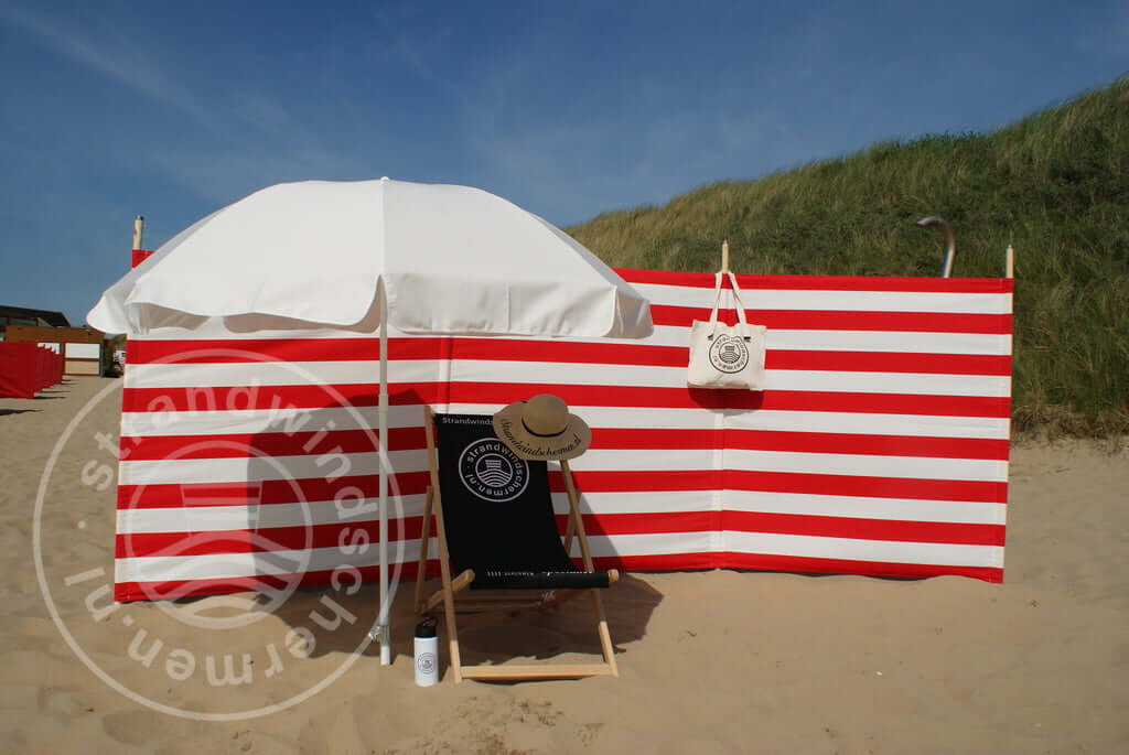 Niet alleen uit de wind maar ook uit de zon met een bijpassende Dralon parasol, die een zeer goed UV filter heeft, zo geniet u nog meer van uw vakantiedag!