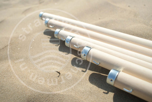 Nu ook leverbaar met deelbare houten stokken zodat het windscherm nog