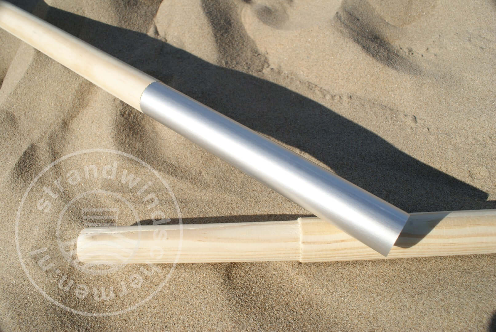 Losse deelbare stokken vind u hier (per min. 4 stuks)Deelbare houten Windschermstok in 2 delen (inschuif), 1.80 meter lang met een diameter van 28 mm, aan de bovenkant voorzien van een metalen Dopje, de onderkant eindigt in een Punt. De delen schuiven met een Aluminium buis 14cm. in elkaar voor een stevig geheel. U kiest deze rechts naast het product door de gewenste stokken aan te vinken.