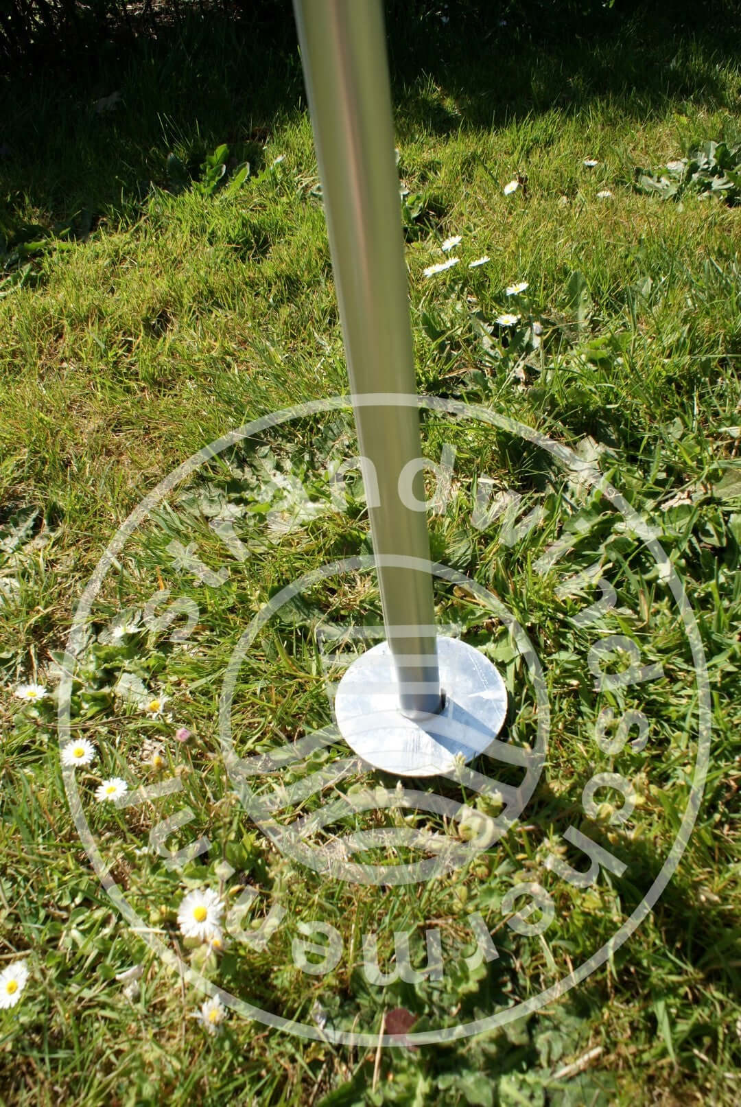 De Grondankers kunnen mooi vlak in het grasveld worden geplaatst (beste is om ze in te graven en daarna stevig aan te drukken)) en U heeft daar geen omkijken meer naar.